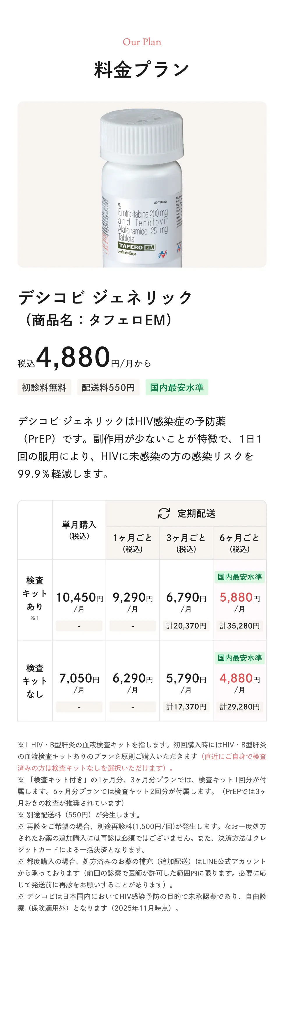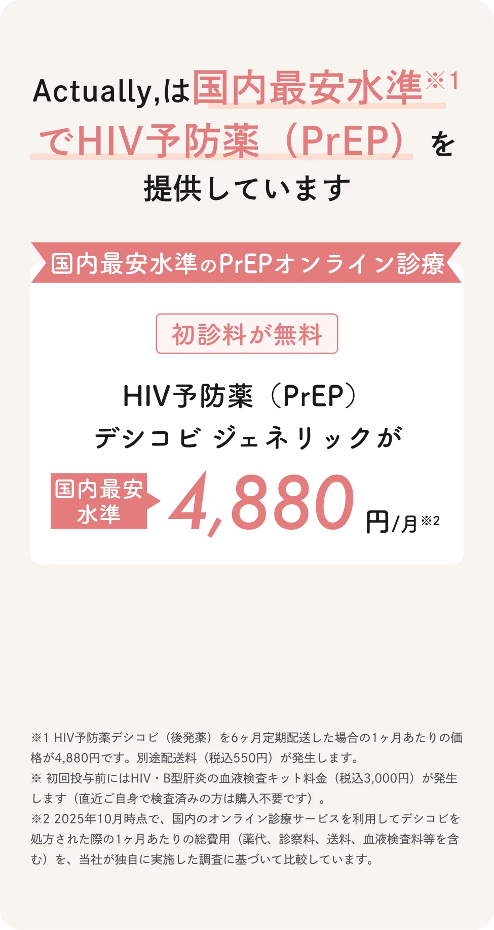 また、デイリーPrEPの感染予防確率は99.9%以上※1であると言われている一方で、オンデマンドPrEPの感染予防確率は85%程度※2と言われています。少しでも確率を上げたい方には、デイリーPrEPがおすすめです。