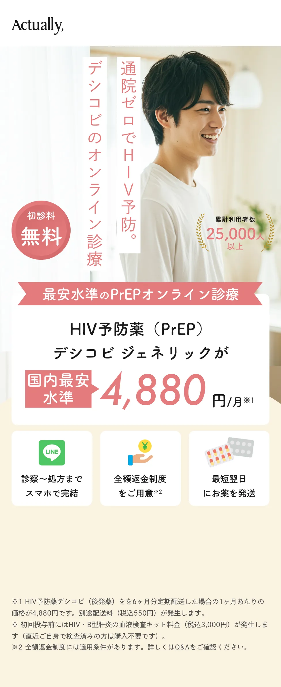 ※2 出典: Molina JM et al. 「HIV-1感染リスクが高い男性におけるオンデマンドPrEP」On-Demand Preexposure Prophylaxis in Men at High Risk for HIV-1 Infection (2015)