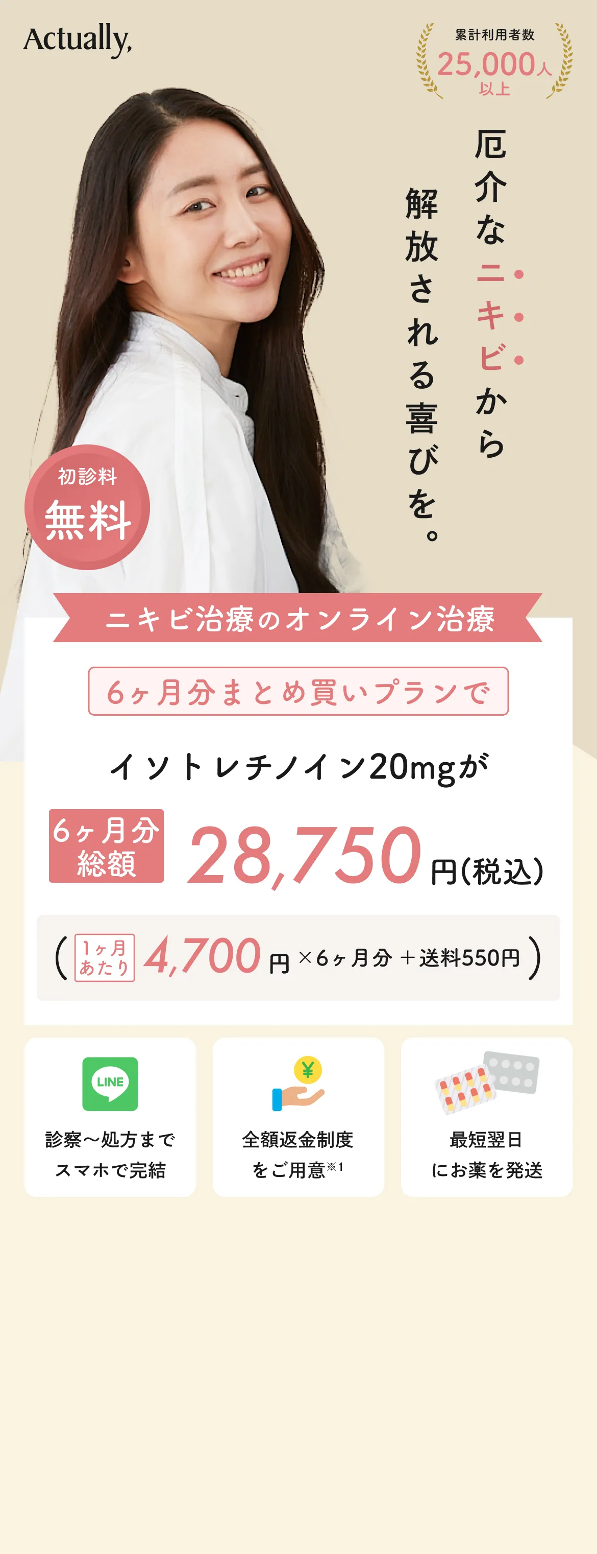 - Actually, でニキビ治療の診察を受け、お薬を処方された方